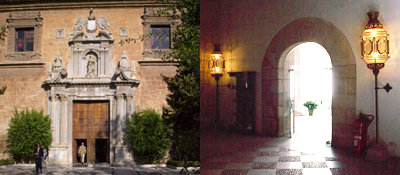 1). Entre por la puerta principal del Hospital Real. Una vez en el zaguán de la entrada, diríjase hacia la puerta de la izquierda.